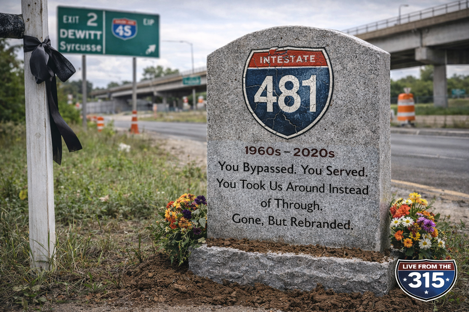 SYRACUSE, NY — With the Community Grid project set to transform Central New York’s highway system, a group of Syracuse residents is moving forward—confidently and somewhat dramatically—with plans to erect a gravestone for Interstate 481 before it officially becomes the new Interstate 81. The group, calling themselves Citizens for Proper Closure, says the memorial isn’t… Continue reading Syracuse Residents Plan Gravestone for Interstate 481 Ahead of Its “Identity Change” Into New Interstate 81